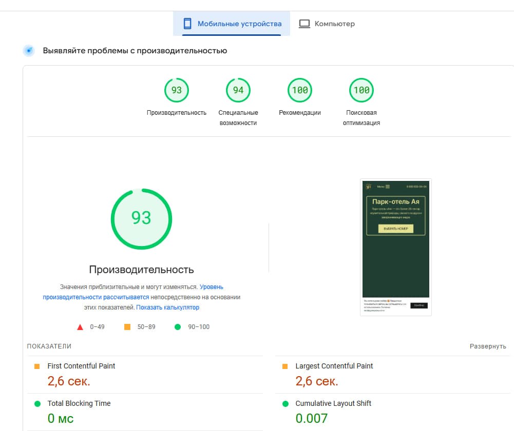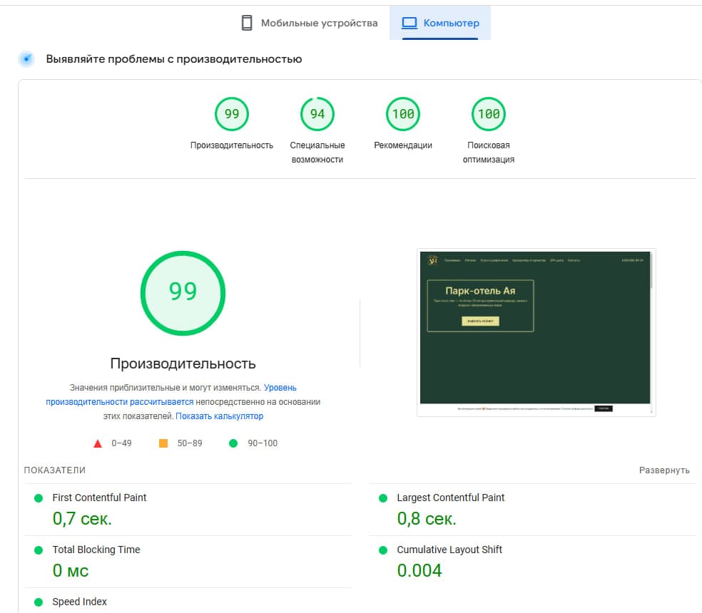Разработка сайта для парка-отеля Ая.